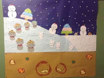 ブックアシストの方々が、職員室前に素敵な冬の掲示をしてくれました。