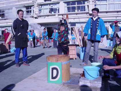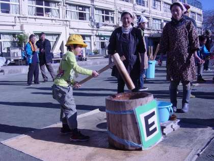 もちつき1 12月5日(土) 公開日 2015/12/07 更新日 2015/12/07 今日のできごと 毎年子どもたちが楽しみにしているもちつきを、本日行いました。 はじめの会の後、低学年、中学年、5年生、6年生と、学級ごとにおもちをつきました。