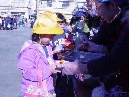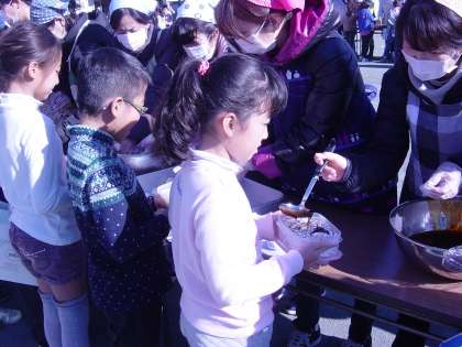 もちつき3 公開日 2015/12/07 更新日 2015/12/07 今日のできごと つきたてのおもちのおいしいこと!あんこ、きなこ、あまからの3つで味付けされたおもちを、お友だちと一緒に食べました。