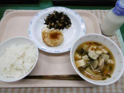 ひじきには、骨や歯を丈夫にしてくれる「カルシウム」がたくさん入っています。今日も残さず食べましょう。