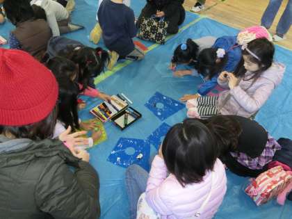 作り方は、好きな色のビニールを選び、そのビニールに絵や模様を描き装飾しました。次に、お家の人や5年生の保護者の方々にお手伝いをしてもらい、ビニールに竹ひごを付けました。最後に、紙テープをビニールの下の部分に付けて完成です!