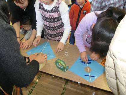 本日のふれあい広場は、スペシャルイベント「たこ作り」でした。たこ作りの講師に金子勝治さんをお迎えしました。