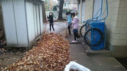 12/14 整美委員会 朝の活動 公開日 2015/12/14 更新日 2015/12/14 委員会・クラブ活動 本格的な冬を迎え、木々の葉もほとんどなくなってきました。しかし、種類によっては、まだまだこれから落ちる木もあるようです。 校庭側の木の葉はほとんどなくなっているので、今朝は、学校の北側の落ち葉を集めました。そうすると、びっくり。量にして90Lのごみ袋に6袋分にもなりました。 主事さんの仕事を少しでも楽にしてあげたいと、冬休みに入るぎりぎりまで毎日取り組んでいきます。