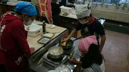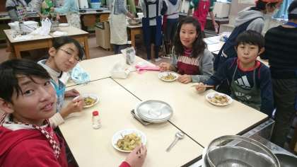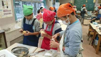 みんな手際よく(?)ジャガイモの皮を剥き、レシピを見ながら煮たり、焼いたりしました。給食後の実習でしたが、自分たちの作ったジャガイモ料理をペロリとたいらげていました。