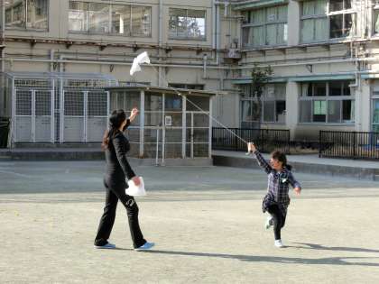 「ともだちにひろげてもってもらえば、うまくあがるかな。」