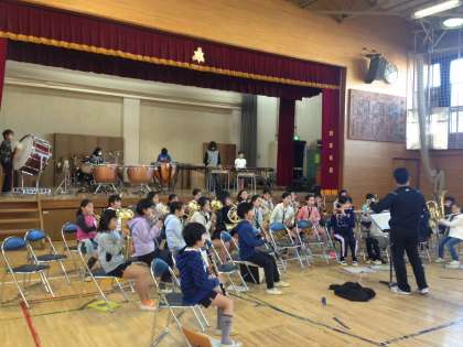 その後、2月11日の管楽器発表会で演奏する2曲を合奏練習しました。普段の音楽室とは違う体育館での響きを感じながら演奏することができました。練習を重ねるうちに、音が遠くに飛ぶようになり、より迫力を増した音楽になっていると思います。