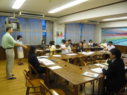 昨日6月18日の夕刻から第2回目の学校運営委員会が開催されました。今回は学校支援委員会の皆様と教育委員会事務局の方も参加いただきいつもの倍近い人数でした。英語につきましては、新しい学習指導要領の中で年間35時間入ってきます。本校には、昨年より聖学院大学講師のバード先生と藤原先生が英語活動の支援と指導にあたってくださっており、学校支援委員に加わってサポートいただきます。大変心強いかぎりです。