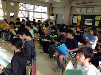 今日は、5年生だけで歌う「明日へつなぐもの」の音とりをしましたが、少ない時間ですぐに歌えるようになり、式に向けての心意気を感じることができました。