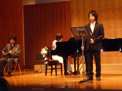 また、メンバーの子ども世代の演奏も見事でした。市古 裕子さんの朗読、市古 晶子さんのピアノ、柳田美紀さんのフルート、バリトン新井 克さんで「千の風になって」を演奏しました。