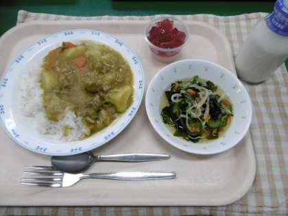 今日は、「カレーライス」のクイズを出したいと思います。今日の給食のカレーライスには、じゃがいもを何個使ったでしょうか?
