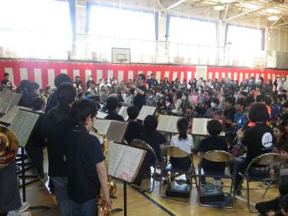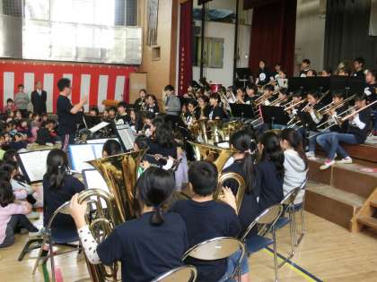 3月15日・16日 キッズバンド校内コンサート 公開日 2016/03/16 更新日 2016/03/16 その他 昨日と今日の昼休み、キッズバンドが校内コンサートを体育館で行いました。大勢の観客の中、素晴らしい演奏を披露してくれました。