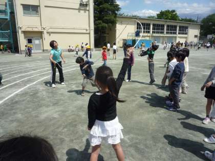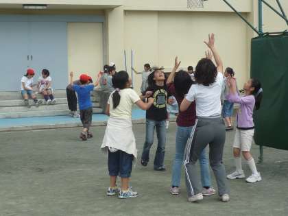 5/17 休み時間の共遊びは心のオアシス 公開日 2010/05/17 更新日 2010/05/17 校長室より 用賀小学校の休み時間は、校庭いっぱいに広がって遊ぶ子どもたちの笑顔がはちきれそうです。中でも子どもたちと一緒に先生方も遊んでいると一層笑顔がふくらみます。 子どもたちの思いっきりの笑顔を載せたいくらいですが、雰囲気だけお届けします。