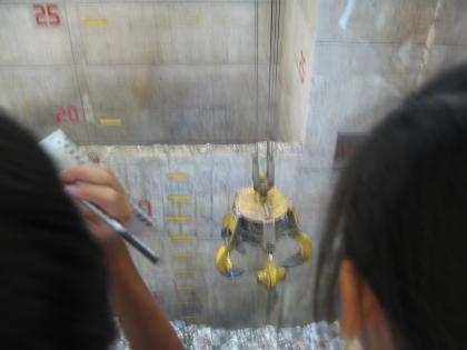 工場の方から清掃工場の仕組みの説明を受けたあと、ごみ収集車が集めたごみが、ごみバンカに貯められ、クレーンで運ばれる様子などを見学しました。