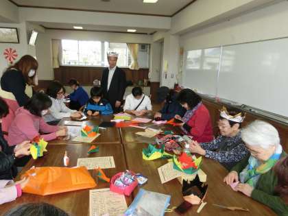 4月16日(土)ふれあい広場(2) 公開日 2016/04/16 更新日 2016/04/16 特色ある活動・取り組み 図書室では、素話や読み聞かせ、パネルシアターをしていただき、和やかな時間を過ごしました。 ランチルームでは、地域の方々と一緒に兜を作りました。 協力して後片付けをした後に、美味しくお団子をいただきました。