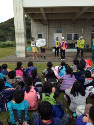 海に入る諸注意を受けています。安全に気をつけて入ります。