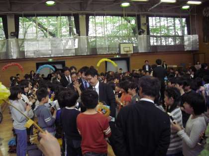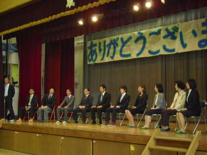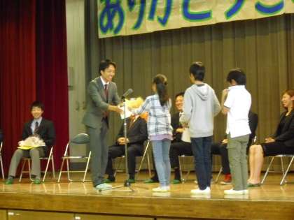本日5・6校時に平成28年度の離任式が行われました。2年生から6年生までの子どもたちは、お世話になった先生が体育館に入ってくると、「○○せんせ〜い!」と大きな声で先生を呼び、手を振っていました。それぞれの先生に、代表児童が感謝の言葉を話し、花束、作文集を渡し、感謝の気持ちをしっかりと伝えることができました。中には涙ぐむ子もいて、それぞれの先生方との深い思い出を感じました。お別れは寂しいですが、今の学年のことを一生懸命に取り組み、成長した姿をまた見に来てくださいと伝えていました。心温まる素敵な会となりました。