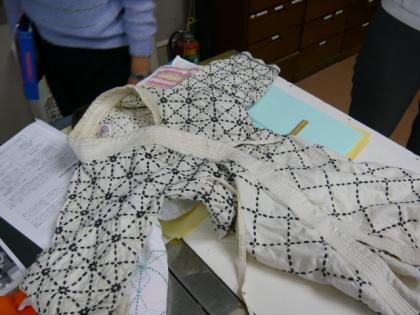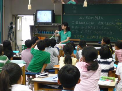 昨日の5時間目は、家庭科の授業研究を行いました。研究テーマが、「考えてくふうして、生活を楽しもう」で、お弁当包み(ランチクロス)を作るためのくふうをしました。9月は、給食室が工事のため1ヶ月間お弁当になります。そこで、少し高度ですがランチクロスを作ることにしました。5年生は「なみぬい」や、「玉止め」を教わりますが、ただ、ランチクロスのまわりを縫うのだけではなく、「自分らしさ」や「使いやすさ、楽しさ」を込めてつくります。今回の授業はまだ、デザインを考える段階です。図工の先生が作った作品を見たり、保健の先生の子ども(5年生)が作った作品をみて、たくさん刺激を受けていました。みんなが考えたデザインは、けっこう難しそう・・・。でもチャレンジします。