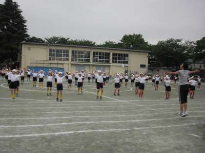 5/26 運動会練習〜1年生〜 公開日 2010/05/26 更新日 2010/05/26 校長室より 1年生の表現は「2010 YOGA ワールドカップ 〜ゴールをめざせ!パワフルシュート!!〜」です。サッカーの動きが題材ですので、足の動きなどなかなか難しい振りが入っています。スピード感あふれるダンスと、1年生の元気のよさを楽しみにしていてください。
