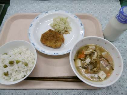 今日のグリンピースは、3年生と給食委員さんがさやむきをしてくれました。頑張ってくれた3年生と給食委員さんに感謝して、残さずに食べましょう。