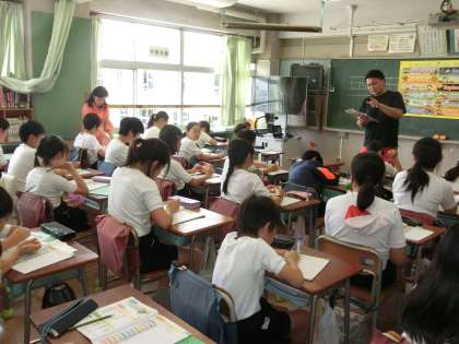 5・6年生の英語活動には、英語活動支援委員会の方が学習の支援に入っていただいているおかげで、楽しい英語活動を行えています。