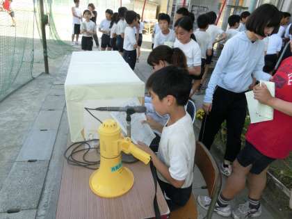 放送係は、各演目のアナウンス練習をしました。採点係は当日掲示する得点板を設置しました。
