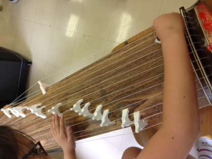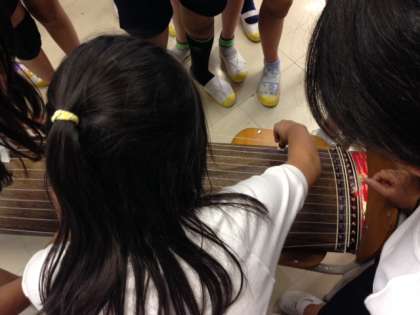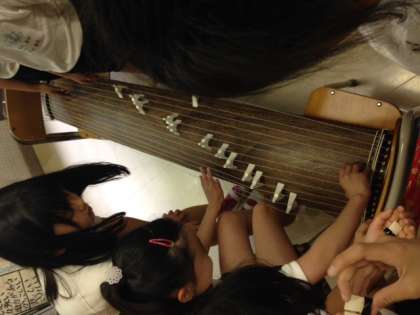 実際に和楽器の一つ、お箏に触れ、平調子という基本的な音階を一つずつ弾くと、その日本的な音階と音色に「おお!」という声が上がりました。
