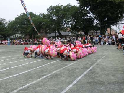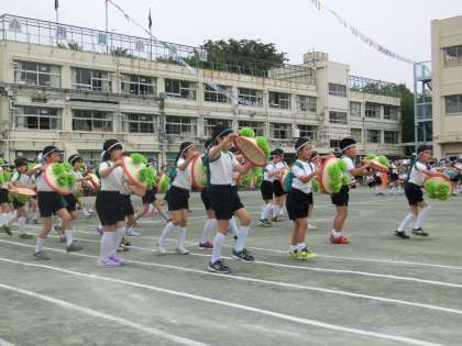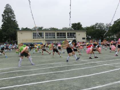 4年生は、「花笠まつり」をキレ良く踊りました。
