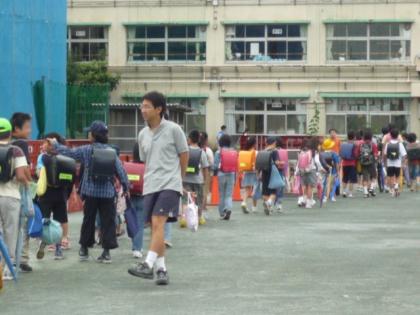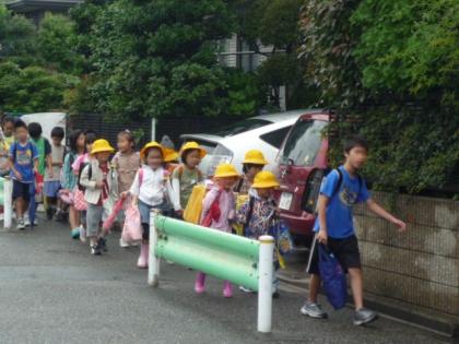 6/30 集団登校開始(工事に注意) 公開日 2008/06/30 更新日 2008/06/30 校長室より 学校が工事の中で集団登校が始まりました。第一日目の登校日に、雨が上がってよかったです。今日は、校庭の様子がいつもと違っているので、先生方が、安全のために登校指導をしました。工事期間中は、登下校時の歩き方や、遊び方について、継続して指導・看護に当たります。集団で登校しながら、新しい登校のルールを確認します。 (児童の学校生活についてのお知らせを配布いたしますのでお読みください)