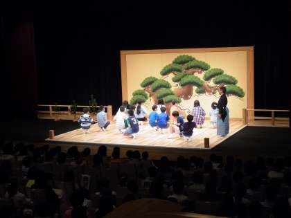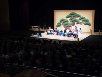 鑑賞教室では、狂言の「附子」を鑑賞しました。5年生の時に狂言について学習していましたが、実際に見るのは多くの子が初めてでした。プロの方の狂言を楽しく鑑賞することができました。また、狂言ワークショップも行われ、クラスの代表の子が舞台の上で、狂言の一部を体験することができました。