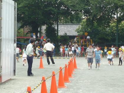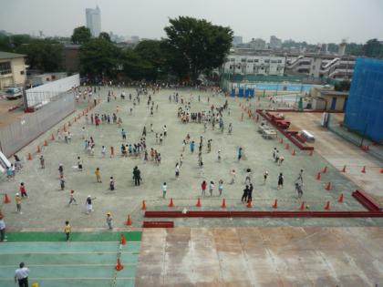 7/1 やっぱり休み時間は元気に外遊び 公開日 2008/07/01 更新日 2008/07/01 校長室より 工事中でも、やっぱり休み時間は元気に外遊びです。 狭くなった校庭は、順番で4学年が使います。残りの2学年は屋上での遊びです。担任の先生方と一緒に遊びに出て、一緒に遊びます。安全のために副校長先生や専科の先生方は、何ヶ所かに分かれて遊びを見守ります。 これは、9月の工事終了まで続けていきます。
