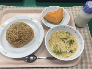 メロンには、疲れをとってくれたり、夏バテを予防してくれる栄養素がたくさん入っています。また、今日のメロンは果肉が赤く、目によい「β-カロテン」もたくさん入っています。残さず食べましょう。