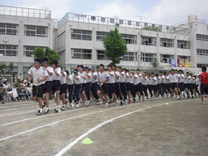 中学生になると体格もぐんと大きくなり迫力があります。走る種目が中心ですが、特にリレー競技や、3年生による「ムカデ競走」は迫力満点でした。用賀小学校の卒業生が、真剣に競技に取り組んでいる姿を観ることができて幸せな一日でした。