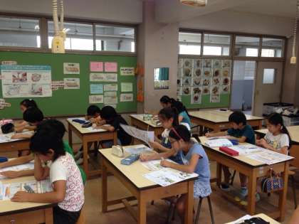 家庭科で学習した裁縫について、1学期のまとめに集中して取り組んでいます。