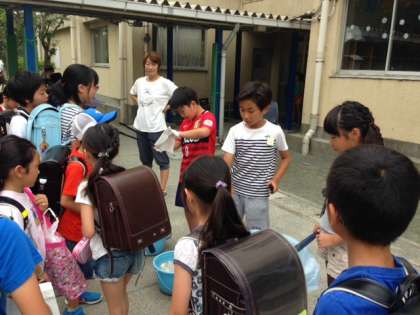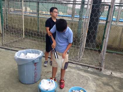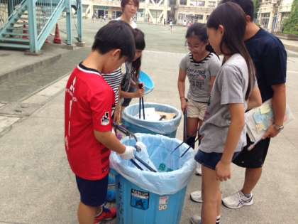 拾ってきたごみは、運営代表委員の児童が受け取り、分別します。