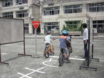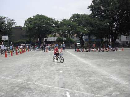 今日は3年生の自転車教室です。玉川警察署からも2名の警察官が来てくださり、正しい自転車の乗り方のお話しと実技指導をていねいにしてくださいました。「子どもたちの話を聞く姿勢や、順番を待っている時の態度がとても良いですね」と誉めてくださいました。私たちは、子どもたちが誉められることが一番うれしいことです。ご協力をいただいた校外委員の皆さん、自転車担当の皆さん、本当にありがとうございました。