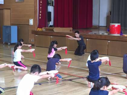 創作エイサーの中には琉球空手の型を取り入れていることや、重心の移動の仕方、バチ指しなど、細かいポイントまで丁寧にアドバイスをくださいました。