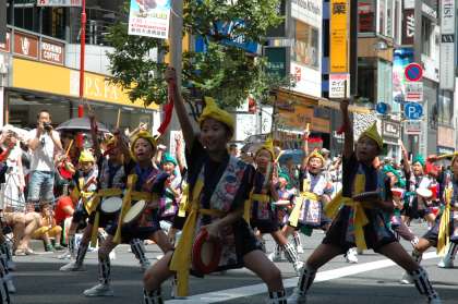 天気は気持ちの良い晴れ、ここ数日では気温も急激に上がった猛暑日でしたが、子供たちは暑さにめげず、力いっぱいのヘーシ(掛け声)と演舞で、新宿の観客を魅了しました。