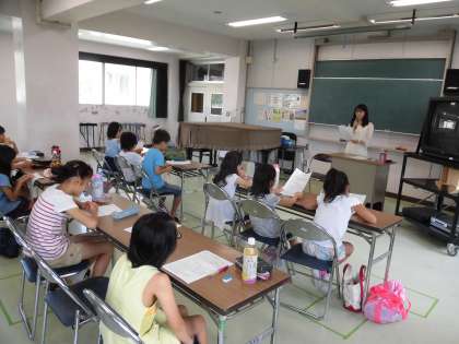 始まる前に、講師の先生から受け取った原稿を見た子ども達は、早速読み始めます。