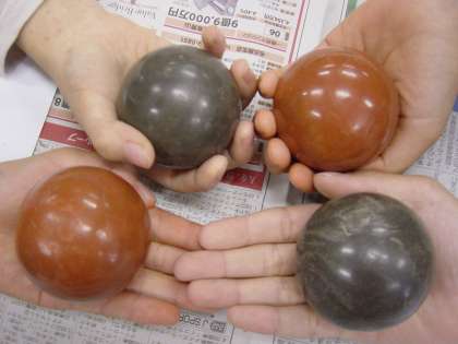 最初、どろだんごが球体になるよう、40分間ひたすらけずり、丸くなったところで、今度はガラスびんで、ぴかぴかになるよう時間いっぱいみがき続けました。