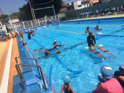 はじめは水を怖がっていた子ももぐったり、浮いたり…少しずつできるようになりました。ぐんぐん上達した子も、もう少し練習していこうねという子もいますが、連日参加することで一人一人の伸びがみられた10日間でした。