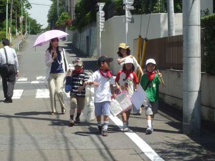 6/17 2年生の町探検ー1 公開日 2010/06/17 更新日 2010/06/17 校長室より 今日は2年生の生活科の学習で町探検に行きました。子どもたちがグループに分かれて上用賀のまちを探検しました。各グループにはお母様方がついてくださるので安心です。学校では何回も実地踏査をして各施設にお願いに上がりました。どの施設も快く引き受けてくださり感謝しております。 さてどんな学習ができるのか・・・?とっても楽しみです。!