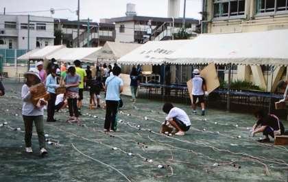 今日は、朝早くからやぐらの会、PTA、地域・保護者の方々が来てくださり、会場設営を行っています。