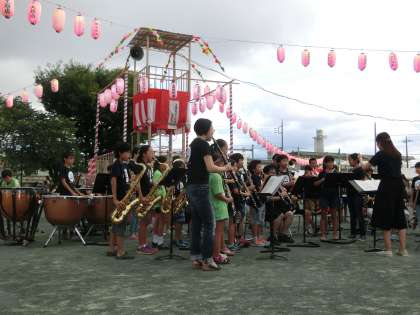 今日は用賀小学校の校庭で、上用賀盆踊り大会が行われています。