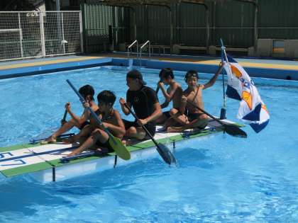 8月31日(水)アドベンチャーIN多摩川 公開日 2016/08/31 更新日 2016/08/31 その他 8月28日(日)に実施予定のアドベンチャーIN多摩川でしたが、天候不良のため中止となりました。 夏休みに一生懸命いかだ作りをした子ども達、保護者の皆様のためにも「いかだに乗船しよう!」ということで、本日用賀小学校のプールで、いかだに乗船しました。 保護者の皆様、教職員一同で、頑張った子ども達を賞賛しました。