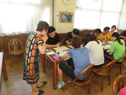 本日午後、本校の英語授業の講師に来ていただいている、バード先生と藤原先生に来ていただき、英語研修を全教員で受けました。