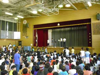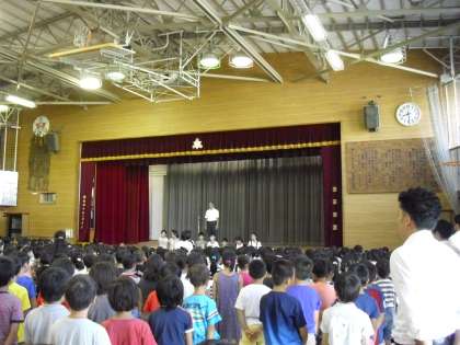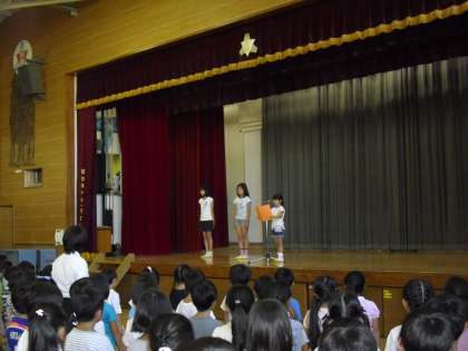 校長先生のお話のあと、2、4、6年生の代表児童が、2学期の意気込みについて話してくれました。3人とも立派な挨拶をしてくれて、全校みんなでやる気になりました。