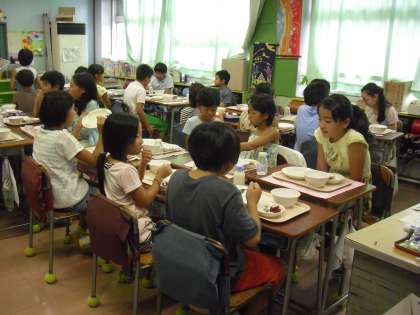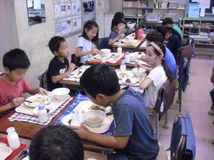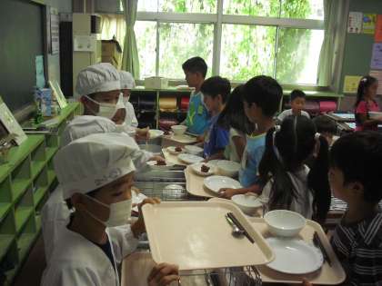 今日から子供たちが待ちに待った給食が始まりました。夏休みがありましたが、子供たちは給食の支度もきちんとできました。