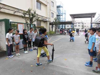 10/3 4年 あいさつ運動 公開日 2016/10/05 更新日 2016/10/05 学年 あいにくの曇り空から始まる今週ですが、用賀小学校の子ども達は元気いっぱい!朝から全校児童にあいさつです。 「おはようございます」の声が校門に響き渡り、当番の児童も登校してきた児童も笑顔になれる運動です。