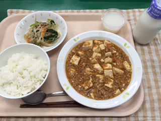 10/6 本日の給食 公開日 2016/10/06 更新日 2016/10/06 給食 〜今日の献立〜 ごはん 牛乳 麻婆豆腐 塩ナムル ホワイトゼリー 〜給食メモ〜 お米がおいしい季節になりました。今月から給食のお米も新米になりました。そこで今日は、「お米」のクイズを出したいと思います。用賀小学校の給食のお米は、どこで作られたものでしょうか? 1.北海道 2.新潟県 3.埼玉県 ※クイズのこたえは、「食材がとれたところ…」の最後にのせています。 食材がとれたところ・・・ 閉じる 米…埼玉県 豚肉…青森県 にんじん…青森県 江戸菜…千葉県 にんにく…青森県 しょうが…高知県 たまねぎ…北海道 長ねぎ…山形県 もやし…群馬県 クイズのこたえは、3の「埼玉県」です。埼玉県行田市の農家、新井さんが作っているお米です。新井さんは、東京農業大学が給食の残菜などから作っている「みどりくん」という肥料を使って、お米を育てています。一生懸命育ててくださったお米です。感謝して、残さず食べましょう。