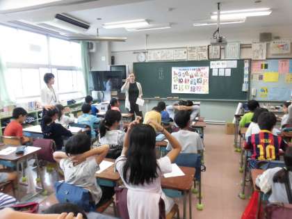 今学期の土曜授業公開で、4年生は外国語活動をしました。ALTの先生にご来校いただき、一緒に授業を進めていきました。今回は「アルファベット」の復習や「数」を学習しました。声に出して発音したり、じゃんけんを使ったゲームを通じて、楽しく、明るく外国語活動を行うことができました。